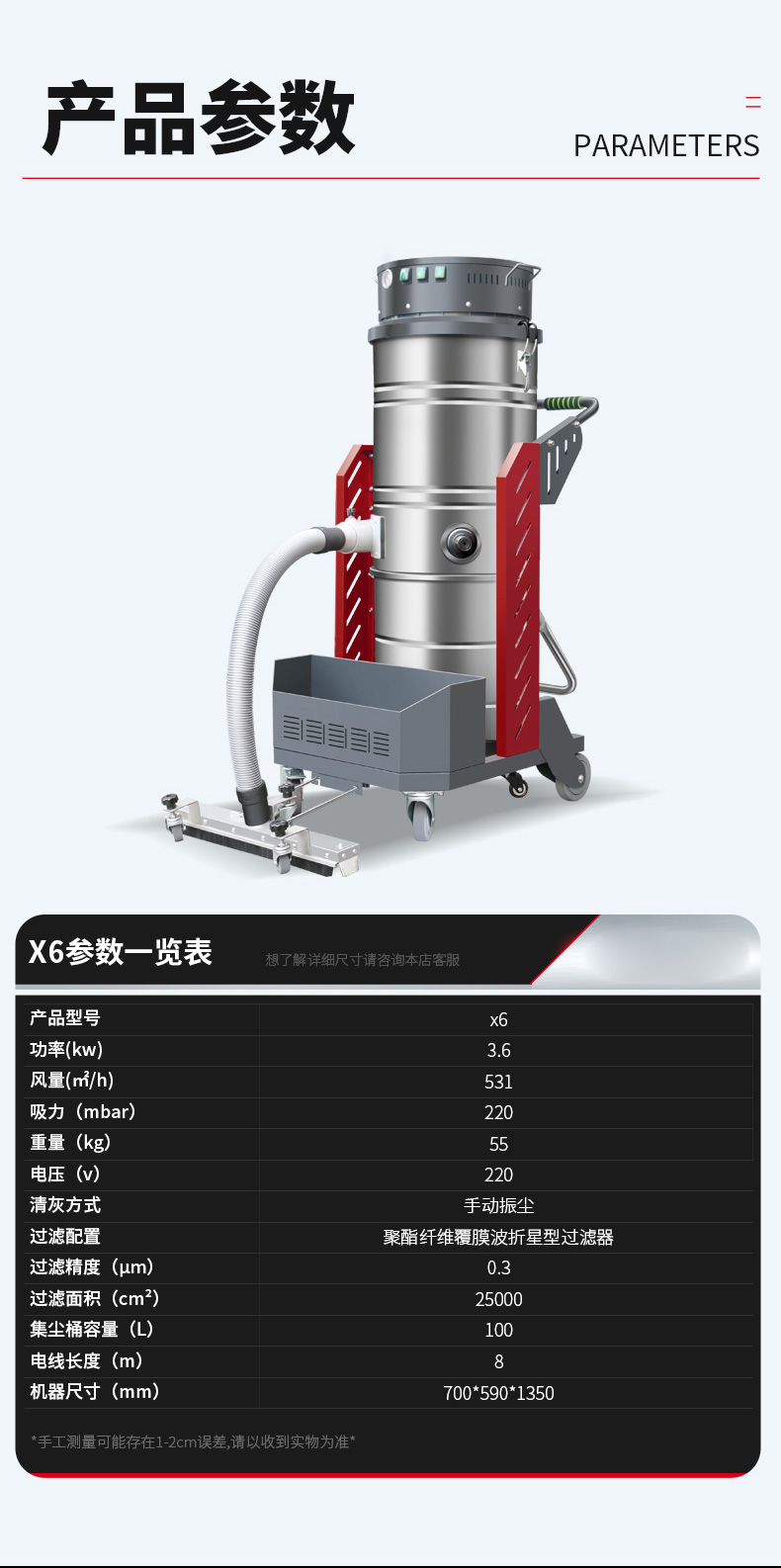 圣安多尼堂坦洁380V 双桶手动反吹工业吸尘器X8系列