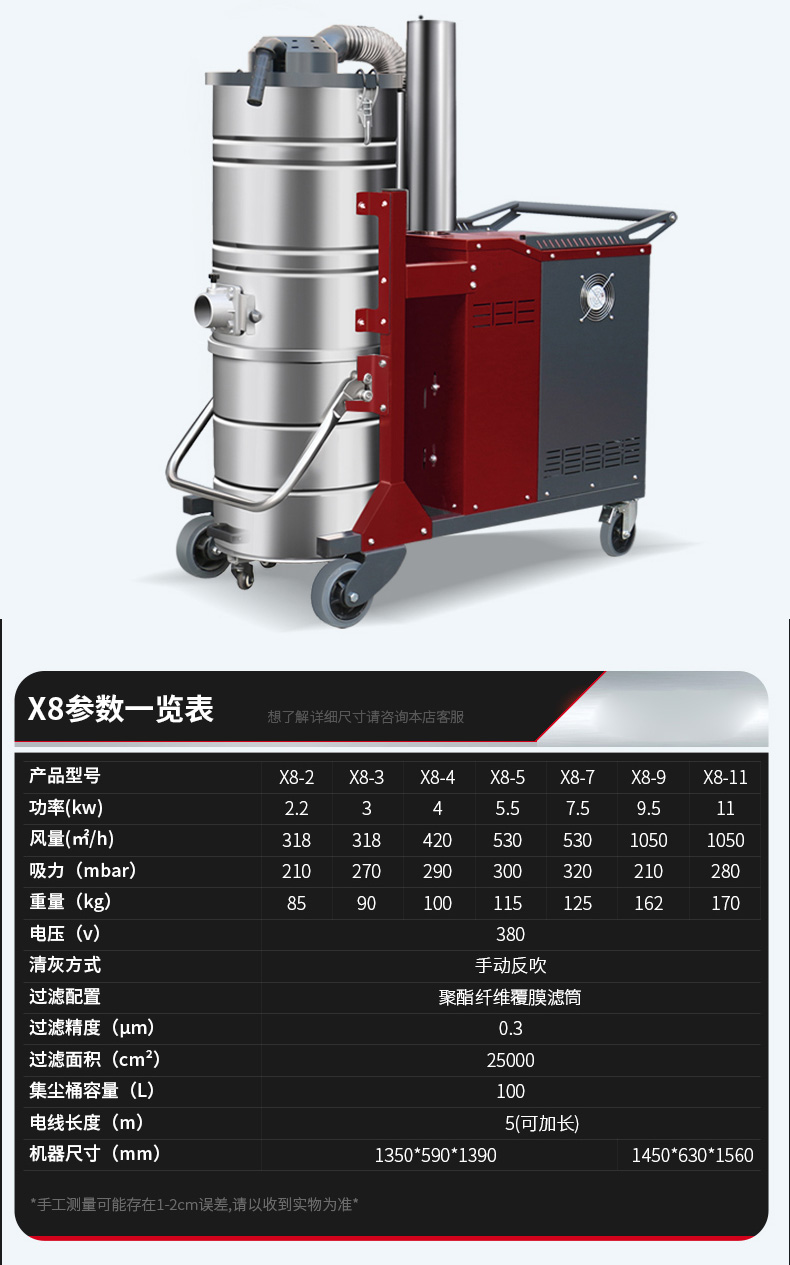 圣安多尼堂坦洁380V 双桶手动反吹工业吸尘器X8系列